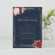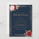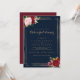 Esta invitación geométrica de oro y de los ensayos tropicales rojos es perfecta para un ensayo rústico boda. El diseño artístico del marsala incluye acuarelas, rosas verdes, rosas, borgoñas y ondulados, decorados con una vegetación cuidada alrededor de marcos geométricos de oro en un elegante y radiante ramo de flores.
