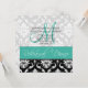 Invitación Cena de ensayo Invitar a Damask Monograma Turquesa