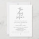 Establece el tono para una tarde inolvidable con nuestra tarjeta de invitación 'El Día Antes'. Acepta la elegancia moderna mientras invitas a seres queridos a unirse a ti para una celebración pre-nupcial memorable. Con diseño elegante y letra, en esquema de gris oscuro, esta invitación promete una tarde de anticipación y alegría.