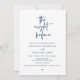 Fije el tono para una noche inolvidable con nuestra tarjeta de invitación "La noche anterior". Acepta la elegancia moderna e invita a sus seres queridos a unirse a usted para una memorable celebración pre-boda. Con diseño elegante y escritura, en un esquema azul marino, esta invitación promete una noche de anticipación y alegría.