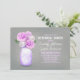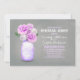 Magnífica cena rústica con tarro de albañil pintado y flores moradas claras. ¡Esta invitación es absolutamente hermosa! Las jarras de albañil pintadas son una fabulosa pieza hecha a mano - algo que uno hace y que se ve divertido y simplemente adorable. Jarrones de flores - las jarras de albañil pueden añadir algo muy único y especial a su rústico, vintage pero moderno tema de la cena. —Póngase en contacto conmigo si tiene alguna pregunta sobre el diseño o tiene una solicitud de color personalizado. — Si pulsa el botón PERSONALIZAR IT, podrá cambiar el estilo de letra, color, tamaño, movimiento, etc., le dará más opciones.