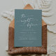 Esta verde azulada invitación a la cena de boho moda de marisco es perfecta para una noche minimalista antes del ensayo boda. El moderno diseño bohemio azul verde y colorido presenta una caligrafía rústica sencilla con un estilo único y clásico que recuerda a la playa, el océano y la costa de verano.