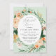 Cenas con un buen ensayo. Elegante y moderno marco de color pastel acuático con vegetación floral y botánica en suaves tonalidades de tierra de melocotón, naranja, blanda, amarilla y muchos tonos verdes de verde salado a verde claro y más profundo. Sus detalles personalizados se muestran en una distribución tipográfica elevada que coloca al invitado de honor en el centro y frente.