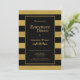 Invitación Cena de Jubilación Negro y Purpurina de Oro a raya
