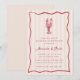 Nuestro ensayo de verano de bogavante para la cena es perfecto para su celebración junto al mar. El magnífico diseño costero cuenta con letras rojas de verano y ilustraciones sobre un fondo de rayas de melocotón pálido. Un doodle de langosta dibujado a mano se sienta sobre los detalles de tu evento, enmarcado por un largo borde de vieiras. Incluye espacio para el ensayo de la ceremonia de su boda y la celebración posterior.