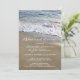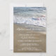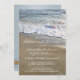Una moderna invitación a la cena de ensayo que incluye una playa con olas que fluyen por la arena.