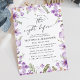 Esta elegante Invitación a la Cena de Ensayo de Boda de nuestra colección Lavanda de Florales Prensados presenta flores de acuarela moradas con delicadas enredaderas de follaje, combinadas con una fuente de letra moderna. Perfecta para cualquier estación. Para realizar cambios anticipados, seleccione Personalizar -> Editar utilizando la herramienta de diseño.