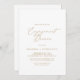 Esta delicada invitación a la cena de compromiso con la caligrafía dorada es perfecta para un evento de compromiso moderno. El romántico diseño minimalista presenta una encantadora y elegante tipografía de champán amarillo dorado sobre un fondo blanco con un aspecto limpio y sencillo.