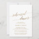 Esta elegante tarjeta de invitación para cenas con un ensayo de caligrafía dorada es perfecta para un evento de otoño. El diseño neutro cuenta con una tarjeta minimalista decorada con una romántica tipografía de Relieve metalizado de imitación de oro. Nota: Este diseño no tiene Relieve metalizado oro real. Es un gráfico de alta calidad hecho para parecer un Relieve metalizado dorado.