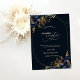 Elegantes flores azul marino con hojas de oro sobre fondo azul marino. Hermosa invitación que se puede personalizar con tu nombre. Seleccione el botón "personalizar" para cambiar el estilo, color y tamaño del tipo de letra.