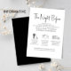 Fije el tono para su cena de ensayo boda con estas invitaciones en blanco y negro que incluyen un guión elegante de caligrafía. El diseño, sencillo y minimalista, combina un guión de moda elegante y moderno con una tipografía clásica, creando un aspecto formal y tradicional. Perfecto para parejas que aman la sofisticación atemporal, esta invitación le da un toque de elegancia a su noche especial. Personaliza el tuyo hoy para una celebración memorable!