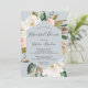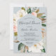 Este elegante ensayo de magnolia azul gris es perfecto para un ensayo boda moderno y elegante. El diseño floral suave incluye peonías color agua rosa rubor, magníficas flores de magnolia blanca y algodón con hojas doradas y verdes en un arreglo lujoso sobre un fondo gris azul claro.
