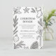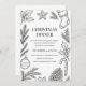 Celebre la temporada con esta elegante invitación a cenar a los Navidades dibujada a mano. Con detallados ilustraciones de vacaciones en blanco y negro de ramas de pino, adornos y acentos festivos, este diseño minimalista e intemporal es perfecto para acoger una cálida y alegre reunión de vacaciones. Personalice los detalles de la cena, la información de fecha y de RSVP para que los Navidades le inviten con gusto. Ideal para reuniones familiares, cenas de oficina o fiestas festivos.