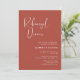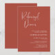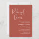 La noche anterior... Asegúrate de que todo sea perfecto para el gran día; recibe invitaciones modernas para tu cena de boda. Una moderna tipografía y un moderno color de terracota para tu papelería boda: elige esta sencilla y elegante suite nupcial. Personalizable completo: puede cambiar el fondo y el color del texto como desee.