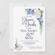 Invitación Cena floral blanca azul y bebidas 80 cumpleaños
