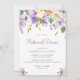 Una temática boda floral con flores moradas pintadas, malvas y acuarelas de melocotón, ideal para bodas de otoño, floridas primavera y bodas de verano. El texto y los colores se pueden personalizar.