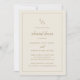 Cena de estilo tradicional Invitación a la cena con un diseño sencillo que incluye tu monograma y tus detalles en un elegante oro falso sobre un fondo de marfil/crema. Esta clásica Invitación a la Cena de Ensayos es ideal para un boda formal.