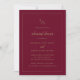 Cena de estilo tradicional Invitación a la cena con un diseño sencillo que incluye tu monograma y tus detalles en un elegante oro falso sobre un fondo burdeos. Esta clásica Invitación a la Cena de Ensayos es ideal para un boda formal.