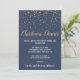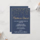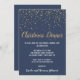 Esta minimalista y moderna invitación a cenar a los navidades de confeti azul es perfecta para Navidades elegantes o celebraciones por la noche. El diseño presenta confeti dorado festivo con caligrafía dorada y blanca elegante sobre un fondo azul.