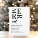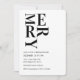 Haga una declaración audaz esta temporada de fiestas con esta invitación a cenar a los Navidades minimalistas. Con una impresionante tipografía negra que hace el MERRY en un diseño vertical moderno, este diseño limpio y sofisticado es perfecto para los amantes de un estilo vacacional contemporáneo y elegante. Ideal para cenas de Navidades, reuniones de vacaciones o fiestas festivos, esta invitación única combina simplicidad con elegancia. Personalizar con sus propios detalles para una elegante tarjeta de celebración de vacaciones.