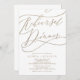 Este romántico ensayo de caligrafía dorada es perfecto para un simple ensayo boda. El moderno diseño clásico presenta vistosos remolinos y florituras con una preciosa y elegante tipografía de Relieve metalizado de oro con chaflán a mano con letras falsas y oro. Nota: Este diseño no tiene Relieve metalizado oro real. Es un gráfico de alta calidad hecho para parecer un Relieve metalizado dorado.