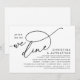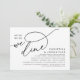 Anuncia y comparte tu felicidad para siempre con estilo con nuestra tarjeta de invitación de celebración de boda de fuga con diseño de tema negro y blanco hermoso y moderno (Después de que lo hacemos cenamos). Es ideal para parejas que han decidido celebrar su mejor día. Con su diseño sofisticado y juguetón, esta invitación seguramente establecerá el tono para un evento inolvidable. La tarjeta de invitación presenta un tema de diseño de letra moderna y minimalista, agregando un toque de elegancia atemporal a tu celebración. Diseñado por TeeshaDerrick
