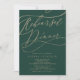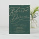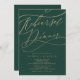 Este romántico ensayo de caligrafía verde es perfecto para un simple ensayo boda. El moderno diseño clásico presenta vistosos remolinos y florituras con una preciosa y elegante tipografía de Relieve metalizado de oro con chaflán a mano con letras falsas y oro. Nota: Este diseño no tiene Relieve metalizado oro real. Es un gráfico de alta calidad hecho para parecer un Relieve metalizado dorado.