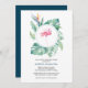 Las invitaciones elegantes y tópicas de la cena del ensayo ofrecen mi flamenco original del rosa de la acuarela rodeado por el verdor botánico enorme y una flor de la ave del paraíso. Personalizar con sus detalles del fiesta o de la cena alineados en la parte inferior en letras modernas. Revés de las invitaciones a los azules marinos sólidos. Para ver más diseños tenga gusto de esto, visita www.zazzle.com/vginvites