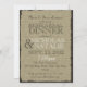 Invitación a la cena de un rústico ensayo rural con el aspecto de burlap y texto marrón oscuro.