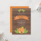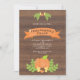 Esta invitación a la cena de Acción de Gracias con amigos presenta un fondo de madera rústica acentuado con gráficas lindas de calabaza y bellotas.