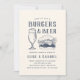 Las invitaciones a la cena de los ensayos de "hamburguesas y cerveza" incluyen ilustraciones de estilo rústico y un respaldo de felpa. Perfecto para cenas de bodas de verano o al aire libre, estas invitaciones informales de moda se personalizan fácilmente con sus detalles de celebración.
