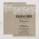 © 2013 Socialite Designs. Nuestro ambiente rústico de yute y nuestra invitación al diseño de encaje son perfectos para cualquier reunión rústica o de campo. Una encantadora combinación de texturas y elementos de diseño femenino para un evento romántico. TENGA EN CUENTA QUE EL LACE Y EL FONDO DE JUTE SON IMÁGENES QUE SE IMPRIMEN A LA INVITACIÓN Y QUE NO SON REALES. Si necesita AYUDA para personalizar o necesitar productos bodas adicionales con este diseño, póngase en contacto con Socialite Designs.