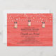 Perfecto para un Boda de estilo campestre o tal vez te guste Mason Jars para cualquier evento! Diseño a la moda de un Rustic Wood y Mason Jars se llenaron colgando de una cuerda de luces brillantes. Madera de granero de color CORAL. Si tiene alguna pregunta sobre este diseño o desea un cambio de color, por favor envíeme un correo electrónico a paula@labellarue.com También compruebe si las tarjetas de Boda Suite, INVITATION, RSVP, RECEPTION y GUEST SEATING coinciden.