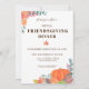 Está decorada con hojas de otoño pintadas con acuarela en colores otoñales y una calabaza naranja.