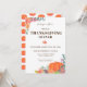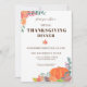 Invite a la familia y amigos a unirse a su cena virtual de Acción de Gracias con esta elegante y rústica invitación. Está decorado con hojas de otoño acuáticas en tonos otoño y una calabaza naranja. Personalizar esta invitación con su nombre y detalles. Acuarela original © Michele Davies.