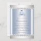 Hermosas invitaciones de princesa Cenicienta Quinceañera con hermoso carruaje real azul y plata de Cenicienta en un hermoso fondo de diamantes azules y plateados. Esta elegante invitación de cumpleaños de princesa se personaliza fácilmente para su evento simplemente agregando sus detalles en el estilo de fuente y redacción de su elección. Este es un diseño impreso sin diamantes reales, purpurina, joyas, láminas, etc.