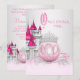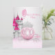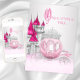 Invitación de cumpleaños de Cenicienta con fondo de carruaje y castillo de princesa de diamantes rosados y plateados. Esta hermosa invitación de cumpleaños de princesa Cenicienta rosa y plateada de cualquier número es fácilmente personalizable para su evento simplemente agregando sus detalles en el estilo de fuente y color, y redacción de su elección. Este es un diseño impreso sin brillo real, diamantes, perlas, etc.