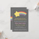 ¡Centelleo del centelleo poca estrella, un qué milagro precioso usted es! ¡Esta invitación linda y colorida de la fiesta de bienvenida al bebé es perfecta invitar a las huéspedes encima que celebren con mamá-a-es antes de su día grande! La invitación tiene una estrella feliz con un rastro del arco iris que pone en contraste agradable con el fondo gris oscuro. Personalice fácilmente con sus detalles del fiesta.