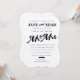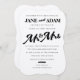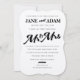 Sencilla, elegante, hermosa tipografía de estilo de pincel en blanco y negro Mr. y Mrs. Wedding Invitation. Personalice estos datos aquí y ahora en línea con sus propios detalles de boda. Simplemente teclee el texto de ejemplo de arriba a la derecha con los detalles de la invitación del día de boda y verá que las palabras cambian en pantalla inmediatamente. Si desea mover o cambiar el tamaño/ubicación del tipo de letra, etc..., haga clic en personalizar. Cada invitación incluye un sobre blanco de tamaño similar incluido en el coste.