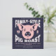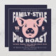 Reúne a la familia, ¡es hora de barbacoa! Invita a toda la familia a disfrutar de una velada alrededor del fuego, excelente comida y buena compañía, y no importa cuál sea la ocasión. Esta invitación tiene una excelente tipografía estirada alrededor de la cara de un cerdo rosa. Plantillas proporcionadas para personalizarla. Fondo azul marino. Perfecto para reuniones familiares, pequeñas reuniones familiares, fiestas de "brindis y asados" de compromiso, fiesta de graduación, o una celebración de bienvenida a casa.