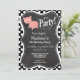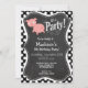 Invitación Cerdo lindo sobre puntos de polka negros y blancos