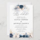 Invitación a la ceremonia de Boda de Rosa Azul y Polvoriento de la Marina. Este elegante y elegante Wedding Shower Invitation presenta espléndidas flores azules y Rosas de la Marina pintadas a mano. Encontrar elementos coincidentes en la colección Floral Azul y Rosa Polvoriento de la Marina.