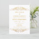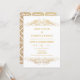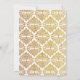 © Socialite Designs. Celebra el amor y el compromiso en la elegancia atemporal con esta invitación al personalizable. Con decoraciones florecientes de Relieve metalizado de imitación de oro en la parte superior e inferior, este diseño encuadra los detalles del evento con gusto. En la parte trasera se muestra un sofisticado patrón de damasco de Relieve metalizado dorado, que le aporta un toque de color a su ocasión especial. Ideal para ceremonias de compromiso, renovaciones de votos y bodas íntimos, esta invitación marca el tono perfecto para una celebración preciada.