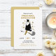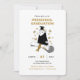El diseño presenta un ilustracion de una lechuza fresca y linda con un vestido y una gorra negros para la graduación y con un diploma de graduación bajo una nube de confetti. ¡Invitaciones únicas para graduación de preescolar, kindergarten, escuela primaria y más!