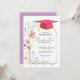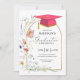 Estas coloridas flores silvestres tienen un marco de gorra de grado rosa, y la invitación a la ceremonia de graduación incluye un gorra de grado rosa y dorado y tipografía de personalizado negro.