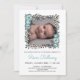 Invitación a la ceremonia de los nombres florales con una foto de tu bebé dentro de un marco floral con flores azules y blancas, vegetación y bayas. Ceremonia de nombres azules con flores de bonito y el nombre de tu hijo en turquesa. Invitación a la ceremonia de nombramiento de un niño personalizada con una foto de su hijo.