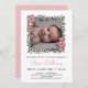 Invitación a la ceremonia de los nombres florales con una foto de tu bebé dentro de un marco floral con flores rosadas y pálidas, vegetación y bayas. Invitación a la ceremonia de nombramiento rosa con flores de bonito y el nombre de su hija en rosa. Invitación a la ceremonia de nombramiento de chicas personalizada con una foto de su hija.