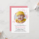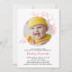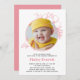 Invitación a la ceremonia de los nombres florales en un diseño rosa y blanco con una foto de su bebé dentro de un marco floral dibujado a mano.