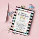 Ceremonia de nombres para hermanos gemelos con huellas de oro, rosa y azul esparcidas por un fondo de rayas blancas y negras. La ceremonia de asignación de nombres está escrita en un guión encantador. Añade los nombres de tus gemelos y los detalles de la ceremonia de nombres.