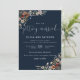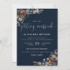 Invitación a la ceremonia de Boda de flores silvestres azul de la Marina. Esta elegante y elegante ducha de bodas cuenta con una hermosa acuarela pintada a mano de la flor azul dulce Navy Blue Tiny. Encontrar elementos coincidentes en la colección de flores silvestres azul de la Marina.